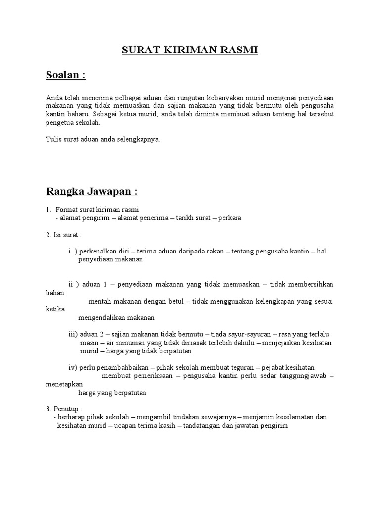 Penutup Yang benar perhatikan penggunaan huruf yang digunakan _____ Nama Penuh HURUF BESAR Jawatan Huruf Kecil Tuliskan sepucuk surat kepada Setiausaha Sukan sekolah kamu untuk memberitahunya bahawa Pasukan Bola. Full PDF Package Download Full PDF Package. Ketahui cara memohon rayuan dan semakan bkss di sini.